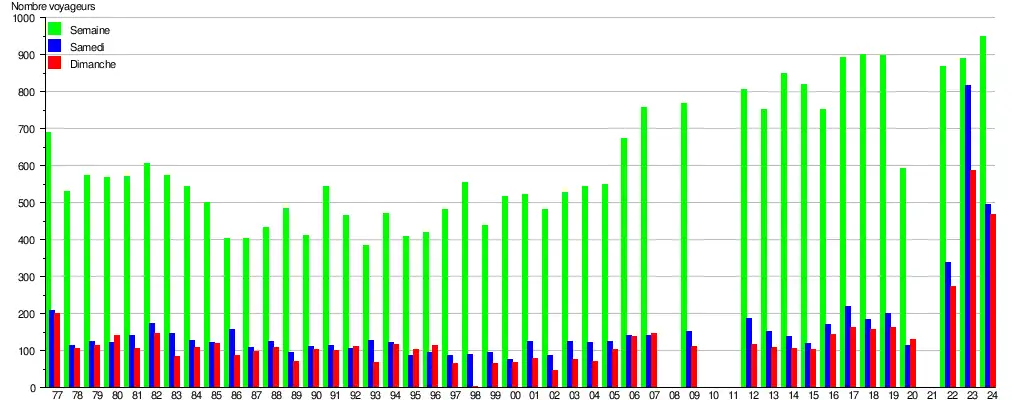 | Nombre de passagers qui embarquent à la gare de Melle | |||