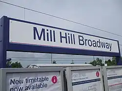 - ↑ (en) « Mill Hill Broadway (MIL) », sur National Rail (consulté le ).