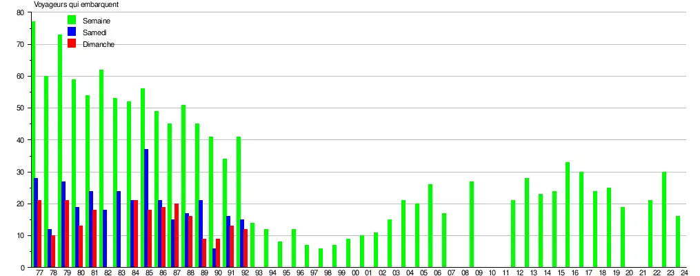 | Nombre de voyageurs qui embarquent à la gare de Pry | |||