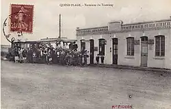 La gare au début du XXe siècle, avec, à gauche, un tramway à vapeur pour Quend-Plage prêt au départ | ||||