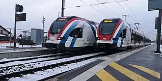 - par la ligne L2 du Léman Express sur la relation Coppet ↔ Annecy, Genève-Cornavin, Annemasse et La Roche-sur-Foron[4] ;