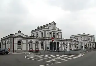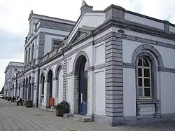 La façade côté ville et l'entrée de la gare en 2021. | |