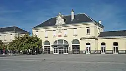 Le bâtiment voyageurs a été fortement remanié à l'occasion de l'ouverture de la ligne de Vichy à Riom en 1931.