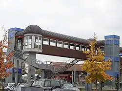 Vue du bâtiment de la gare en 2013. Les travaux d'électrification sont en cours : les poteaux caténaire sont déjà en place. | |