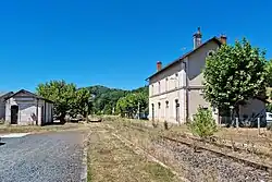 Des constructions, bien qu'inutilisées ou désaffectées par le ferroviaire, sont toujours présentes sur le site : le bâtiment voyageurs réaffecté en pharmacie[9], un abri de quai[10] et la halle à marchandises[11].