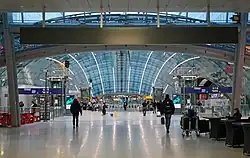 Certaines compagnies aériennes (notamment la Lufthansa) proposent d'effectuer l'enregistrement juste à la sortie de la gare (sur le pont), ce qui est plus rapide que dans l'aéroport[réf. nécessaire].