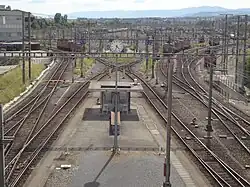 • un faisceau de débranchement et de formation, le plus grand faisceau constituant le cœur du triage. Une bosse de tri est située entre le faisceau de réception et le faisceau de débranchement ;