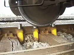 Pour ralentir la vitesse des wagons débranchés, la voie descendant de la bosse est munie de freins de voie. La vitesse est réglée en fonction des wagons (wagon vide ou chargé, chargement léger ou lourd, nombre des essieux, qualité de roulement du wagon...). Ces freins fonctionnent par système pneumatique (par exemple aux États-Unis, en France, Belgique, Russie, Chine) ou hydraulique (par exemple en Allemagne, Italie ou aux Pays-Bas). Pour freiner les wagons en fin de course, des agents présents entre les voies, les saboteurs ou enrayeurs, posaient des sabots sur les rails [1], [2]. Les triages modernes ont éliminé cette tâche pénible et dangereuse en réalisant le « tir au but » grâce à un deuxième rang de freins de voie télécommandés depuis la cabine de contrôle, limitant la vitesse d'accostage à environ 1 mètre par seconde. Ce dispositif évite ainsi les accidents et réduit les avaries du matériel.