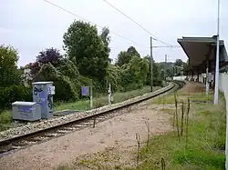 Les plaques indiquant la gare et les tôles formant la couverture de l'abri ont été déposées par la suite, seule la structure subsiste en [3].