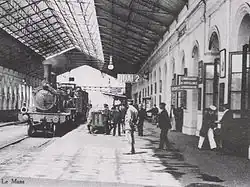 C’est le que le premier train arrive en gare du Mans, accueilli par trois jours de fête. La Compagnie des chemins de fer de l'Ouest met officiellement en service la station du Mans le [3] lors de l'ouverture du service voyageurs de sa ligne de l'Ouest jusqu'au Mans. La station dispose également des installations nécessaires pour les marchandises dont le service est ouvert quelques jours plus tard, le [3]. La ville, comme le département se modernisent et se tournent vers l'industrie. En cinq ans, la population du Mans est doublée. Les lignes, elles, se poursuivent : Sablé, Alençon, Tours ou Laval… en bénéficient. Dès 1863, ce sont 42 machines qui sont au départ de la gare.