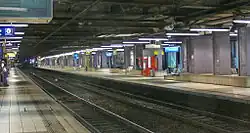 - ↑ « Délibération n° 2012/301, séance du 10 octobre 2012 » [PDF], sur le site du STIF, (consulté le ) : « Déploiement de nouveaux afficheurs Infogare TFT/TLED ligne C, Volet information voyageurs : Identifiant PQI 181 », p. 15. Le STIF définit le nombre de montants pour une gare comme le nombre de voyageurs y prenant le train les jours ouvrés et hors période de vacances scolaires.