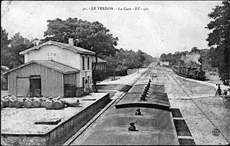 La Compagnie du chemin de fer du Médoc met en service la gare du Verdon le [2] lors de l'ouverture de la section entre la gare de Soulac et Le Verdon, de son chemin de fer de Bordeaux au Verdon.