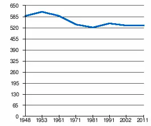 - 1 2 (sr + en) « Livre 20 : Vue d'ensemble comparative de la population en 1948, 1953, 1961, 1971, 1981, 1991, 2002 et 2011, données par localités) » [PDF], pages du recensement de 2011 en Serbie - Institut de statistique de la république de Serbie, (consulté le )