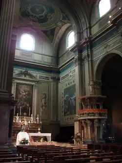 L'église paroissiale, dédiée à la Sainte Vierge Assunta et à Saint-François, a été construite sur les plans de l'architecte Gerolamo Regina de Pavie. De style corinthien, à trois nefs avec coupole, elle fut bâtie entre 1783 et 1715 sur les restes de l'église primitive de Santa Maria intra muros, dont les traces demeurent dans la base du clocher et dans les peintures du XVe siècle qui subsistent à l'extérieur de l'abside. La façade, à deux ordres superposés avec volutes et ponctuée par quatre paires de colonnes doriques en bas et deux paires de colonnes corinthiennes en haut, fut achevée en 1931. Elle est complétée par un fronton à profil brisé. Trois portails d'entrée donnent accès aux trois nefs respectives. Le maître-autel, rénové en 1979, est fait de précieux marbres polychromes de Sienne et de Seravezza ; on peut aussi découvrir un retable représente l'Assomption de la Vierge et saint François-Xavier, les autels latéraux ornés de peintures et bas-reliefs ainsi qu'un crucifix en bois du XIVe siècle. Une chaire en marbre, offerte en 1818 par le prévôt, Monseigneur Amedeo Cecconi, est ornée de bas-reliefs représentant la primauté de Pierre, Jésus et les docteurs du temple et la prédication de Jean le Baptiste. Dans la contre-façade est l'orgue, construit en 1896 par les frères Langa, célèbres facteurs d'orgues de Pavie; d'excellente facture, il compte 1737 tiges et a deux claviers, pour le grand orgue et aussi l'orgue ou table d'harmonie. La transmission est entièrement mécanique.