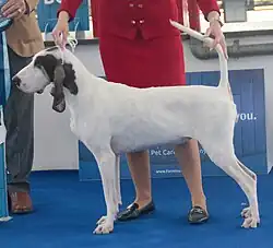 | Robe | Blanc, taché de noir, quelquefois moucheté. Deux taches noires de chaque côté de la tête, joues couleur feu, marques feu au-dessus de l’arcade sourcilière. Présence de la marque de chevreuil. |