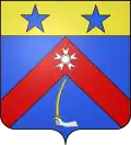 D'azur à un chevron de gueules chargé de l'insigne des chevaliers légionnaires, soutenu d'une main d'argent tenant un sabre haut d'or, au chef d'or chargé de deux étoiles d'azur[3] |