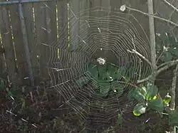Sa toile mesure une trentaine de centimètres de diamètre[8]. Orbiculaire, elle peut être « décorée » de flocons soyeux et est pourvue d'un moyeu ouvert où la femelle s'installe sans s'y suspendre, contrairement aux Micrathena.