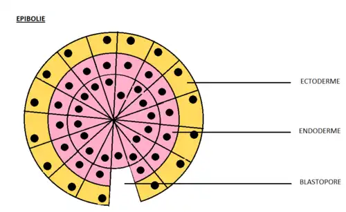 Elle consiste à une orientation des plans de divisions cellulaires qui s'orientent parallèlement sur la surface de la blastula. Ceci entraîne la formation d'un feuillet interne, dit endoderme. Chez l'oursin il s'agit de cellules de l'ectoderme qui se détachent et qui vont vers l'intérieur de l'embryon pour former l'endoderme en se rassemblant. Ce procédé est visible chez certains cœlentérés. Certains oursins font exception.