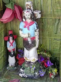 On peut remarquer les sanctuaires du Gauchito Gil au bord des routes argentines, ornés de drapeaux et de rubans rouges.