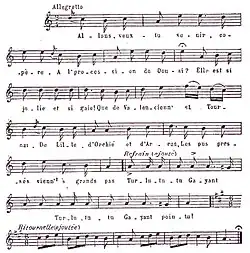 Puis, postérieurement, on y introduisit une ritournelle en majeur et à 6/8, que l'on trouve dans la plupart des morceaux arrangés sur ce thème pour piano, harmonie ou fanfare[11].