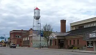 Le centre-ville et le château d'eau.