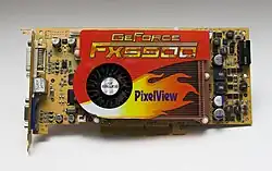 Techniquement parlant, la série des GeForce FX (ou GeForce 5) fut introduite par l’arrivée de la GeForce FX5800 Ultra, modèle de nombreuses fois retardé à cause de la complexité de production. Il introduit non seulement de nouvelles technologies, mais il fut le premier modèle à utiliser de la DDR II, cadencée à GHz. À cause de la chaleur interne de la carte, un système fut développé par ABIT sous le nom de OTES. Il s’agissait du premier modèle de OTES, performant mais malheureusement extrêmement bruyant. Seule la marque Leadtek (qui fut la première à distribuer des modèles de FX 5800, sous le nom de A300 TD et Ultra) mit au point un système de refroidissement basé sur un boîtier entièrement en aluminium qui recouvrait la carte et la ventilait grâce à deux ventilateurs (l’un faisait passer l’air frais dans le boîtier, puis, après un passage dans le radiateur, il était extrait de celui-ci par un second ventilateur chargé de l’extraction). Si l’idée pouvait paraître astucieuse, elle n’en est pas moins restée très bruyante, et la carte pouvait largement monter dans les 110 °C. La carte sortit avec presque 6 mois de retard, les délais n’étaient pas respectés, et ce fut un échec commercial total pour Nvidia qui perdit le monopole du chipset graphique pour la première fois face à ATI et leur surpuissante 9700 Pro[réf. nécessaire]. Les GeForce FX 5800 normale et Ultra furent produites en très peu d’exemplaires et sont quasiment des pièces de collection. Les rares modèles se négocient[Quand ?] aux alentours des 300 .