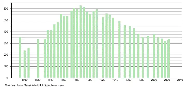 - ↑ Fiches Insee - Populations de référence de la commune pour les années 2006, 2007, 2008, 2009, 2010, 2011, 2012, 2013, 2014, 2015, 2016, 2017, 2018, 2019, 2020, 2021 et 2022.