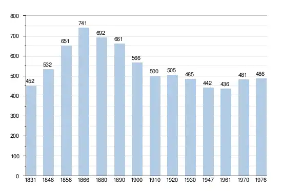 - Sources:INS, Rem:1831 jusqu'en 1970=recensements, 1976= nombre d'habitants au 31 décembre
