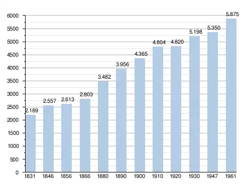 Les chiffres des années 1831 à 1970 tiennent compte des chiffres des anciennes communes fusionnées.