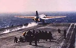 Un F-111B, BuNo 151974, en approche de l'USS Coral Sea en juillet 1968. | ||