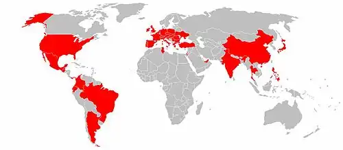 Generali s'enorgueillit d'une présence mondiale, opérant dans 50 pays à travers un réseau de plus de 400 sociétés[54].