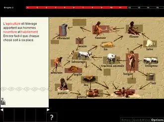 Dans chaque étape du DVD-Rom, le joueur est confronté à plusieurs niveaux de jeu et il doit résoudre des énigmes de réflexion basées sur des faits historiques réels ou plausibles pour la Préhistoire notamment. Il s’agit alors d’explorer les scènes de jeu et de rechercher des indices en interrogeant des personnages ou en récupérant des objets dans une base de données documentaire très riche sur l’histoire des évolutions humaines et technologiques. Le joueur doit également manipuler des éléments comme la barre d'un navire qui lui permettra de faire un tour du monde. Le joueur agit ainsi directement dans les scènes du jeu