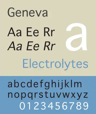 Geneva est une police de caractères linéale créée par Susan Kare pour Apple. C'est l'une des plus anciennes polices fournies avec les systèmes d'exploitation Macintosh.