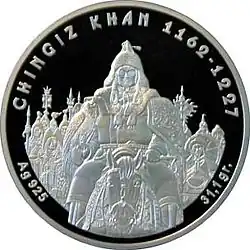 Genghis Khan représenté sur le revers d'une pièce de monnaie kazakhe de 100 Tenge.
