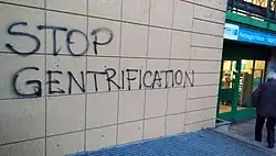 La gentrification, qui est le contraire de la paupérisation, est un type particulier de transformation des villes par l’embourgeoisement de quartiers urbains populaires. Elle se démarque par deux mouvements simultanés, d'appropriation de l'espace par des classes aisées en parallèle avec la dépossession du lieu au détriment des classes populaires ou de populations racisées[9].