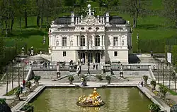 Dès 1868, Louis II prévoyait la construction d'un nouveau palais de Versailles sous le nom de « Meicost-Ettal » (anagramme de « L'État c'est moi » dans la vallée de Linderhof. De à Dollmann présente de nombreux projets. Mais finalement le palais sera construit sur une île du Chiemsee. Le Château de Herrenchiemsee restera inachevé.