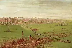 En 1834, le secrétaire à la Guerre Lewis Cass l'autorise à accompagner le brigadier-général Henry Leavenworth dans une expédition visant à établir des relations avec les Comanches dans le Sud-Ouest[17]. Partie en de fort Gibson (en) dans l'actuel Oklahoma, l'expédition parcourt des centaines de kilomètres dans la région de la rivière Rouge avant de rencontrer un groupe de Comanches qui après leur avoir fait une démonstration de leurs talents équestres les accompagnent jusqu'à leur village[18]. Catlin réalise plusieurs peintures des chefs et de leur vie quotidienne avant de tomber gravement malade, comme une grande partie des membres de l'expédition[19]. Après avoir laissé les hommes malades dans un camp à proximité du village comanche, le colonel Henry Dodge poursuit l'expédition tandis que Catlin, après une courte convalescence décide de repartir seul jusqu'à Saint-Louis[20],[19]. Au cours du voyage, près de 150 hommes sur les 500 au départ sont morts, dont le général Leavenworth[20].