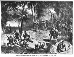 Le matin du révèle la pleine mesure des défenses de l'Union, alors que l'artillerie ennemie ouvre le feu à une distance de 500 mètres avec un « feu fantastique et exaspérant », suivi d'un assaut féroce contre la position de Steuart. Le résultat est un « terrible carnage » de la troisième brigade, qui combat pendant de nombreuses heures sans aide, épuisant ses munitions, mais réussissant à tenir sa position. Puis à la fin le matin du , Johnson ordonne une charge à la baïonnette contre les lignes ennemies bien fortifiées, « confiant en leur capacité à les balayer et à prendre l'ensemble de la ligne de l'Union à revers[32] ». Steuart est consterné, et est fortement critique à propos de l'attaque, mais les ordres directs ne peuvent pas être désobéis[33] et Steuart donne l'ordre au « côté gauche » et à la « file de droite », en envoyant ses hommes sur un lourd feu d'enfilade. La troisième brigade de Steuart avance contre les parapets de l'Union et tente à plusieurs reprises de prendre le contrôle de Culp's Hill, une partie essentielle de la ligne défensive de l'armée de l'Union. Le résultat est un « abattoir », alors que le deuxième du Maryland et le troisième de Caroline du Nord chargent courageusement une position bien défendue fortement tenue par trois brigades, atteignant à près de vingt pas les lignes ennemies. Les pertes sont si sévères parmi ses hommes, qu'on raconte que Steuart s'arrête et pleure, se tordant les mains et en criant : « mes pauvres gars ». Dans l'ensemble, l'attaque infructueuse contre Culp's Hill coûte à la division de Johnson près de 2 000 hommes, dont 700 sont comptabilisés parmi la seule brigade de Steuart — beaucoup plus que tout autre brigade de la division. À Hagerstown, le , sur la force de 2 200 hommes présents avant la bataille, seulement 1 200 hommes sont présents pour le service. Le taux de victimes parmi le deuxième du Maryland et le troisième de Caroline du Nord s'élève entre la moitié et les deux tiers, en l'espace d'à peine dix heures.