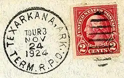 | 1924 | 2¢ carmin | Au-dessus « UNITED STATES POSTAGE » en dessous « 2 CENTS 2 » | Timbre de rouleau | ![]() | Bureau of Engraving and Printing | [4] | |