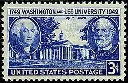 | 1949 | 3¢ bleu foncé « Washington Lee & University » | En dessous « 1749 Washington, Lee & University 1949 » en dessous « UNITED STATES POSTAGE 3¢ » | Dentelé | Bureau of Engraving and Printing | |||