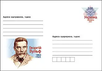 Enveloppe ukrainienne dédiée au 150e anniversaire de George Wulff.
