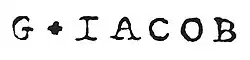 - G.IACOB (avec une fleur de lys entre le G et IACOB), est l'estampille utilisée de 1765 à 1796, par Georges Jacob (1735-1814). (Atelier Georges Jacob)