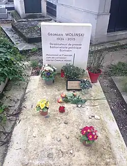 Georges Wolinski meurt le , à Paris 11e, abattu par des terroristes lors de l'attentat contre Charlie Hebdo à Paris[14]. Il est incinéré et ses cendres sont inhumées au cimetière du Montparnasse le .