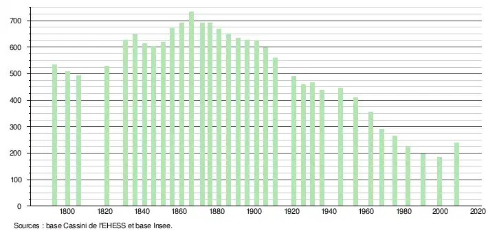 (Sources : Ldh/EHESS/Cassini jusqu'en 1999[5] puis Insee à partir de 2006[6].)
