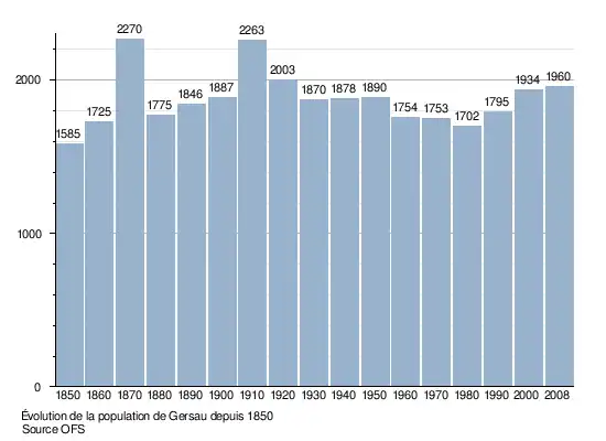 Le graphique suivant résume l'évolution de la population de Gersau entre 1850 et 2008[3] :