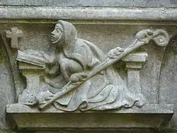 Dans l'iconographie médiévale, elle est déjà associée aux rats ou aux souris. Des rats et des souris lui grimpent le long de la robe ou encore le long de la crosse qu'elle tient[8],[9],[10].