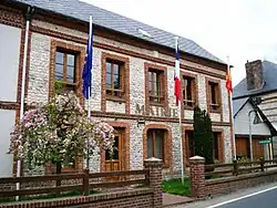 La mairie a été rénovée, la pierre a été mise en valeur, quelques drapeaux ont été ajoutés récemment. Cette maison qui jouxtait l'ancienne boulangerie-café-hôtel, tenue par madame Paris, était dans le passé beaucoup moins typique. Dans la partie « bibliothèque municipale » logeaient les instituteurs (M. et Mme Escarieux). Ce dernier a occupé les fonctions de secrétaire de mairie.