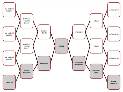 - ↑ cf. Andreas Wieland, Carl Marcus Wallenburg (2011): Supply-Chain-Management in stürmischen Zeiten. Berlin. (en allemand)
