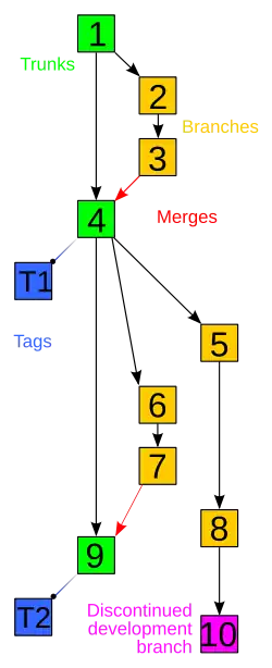 • la maintenance d'anciennes versions du logiciel (sur les branches) tout en continuant le développement des futures versions (sur le tronc) ;