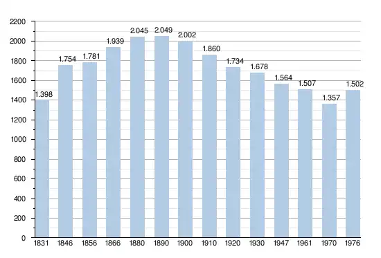 Les chiffres des années 1831 à 1970 tiennent compte des chiffres des anciennes communes fusionnées.